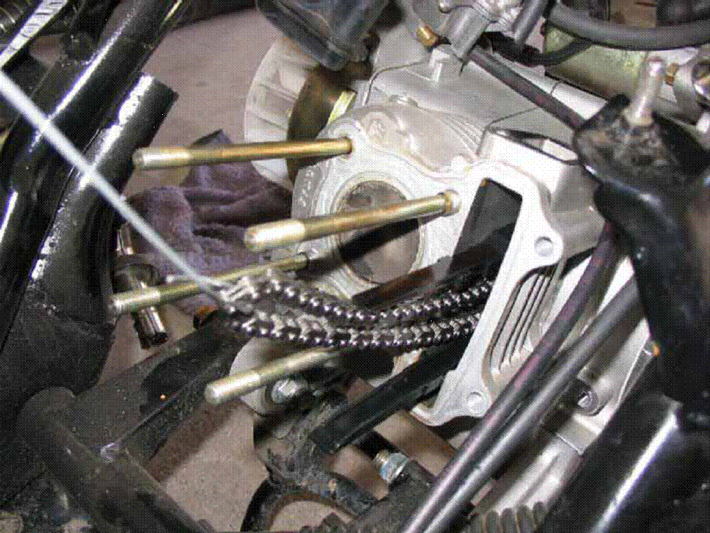 Kettenspanner, der neben dem Vergaser sitzt, muss komplett raus.