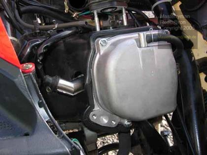 Dazu sind 4 Schrauben auszudrehen. (obere Seitenverkleidung) und der Motor wird frei zugänglich.