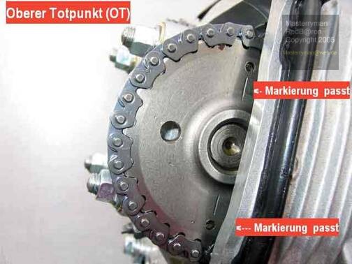und die eingeprägten Linien müssen mit der Kante des Zylinderkopfes fluchten. Das